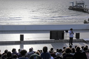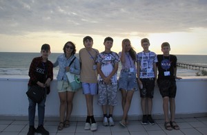 Однако, к 15:30 все были уже на крыше Дворца культуры и спорта, где провели последующие полтора часа, наслаждаясь морским пейзажем и увлекательной лекцией о связи математики с музыкой от знаменитого ученого, популяризатора математики Николая Николаевича Андреева.