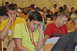 Открытие продолжила одна из частей насыщенной программы математиков, а именно Турнир математических игр, проводимых Дмитрием Юрьевичем Кузнецовым. Ребята были разделены на две большие подгруппы: Младшая Лига (14 команд) и Старшая Лига (11 команд). В каждой команде с оригинальным названием на русском языке участвовало четыре человека. Всего будет проведено три игры, а первой стала "Пенальти". У младших школьников сильнее всех оказалась команда "Золотое сечение", а среди старших с солидным гандикапом первенствовала "С детства за". В следующие дни нас без сомнения ожидает упорная борьба в каждой лиге за призовые места!