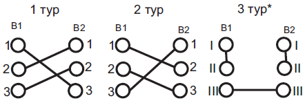 Схема проведения первых туров для групп B1 и B2 (3 команды)